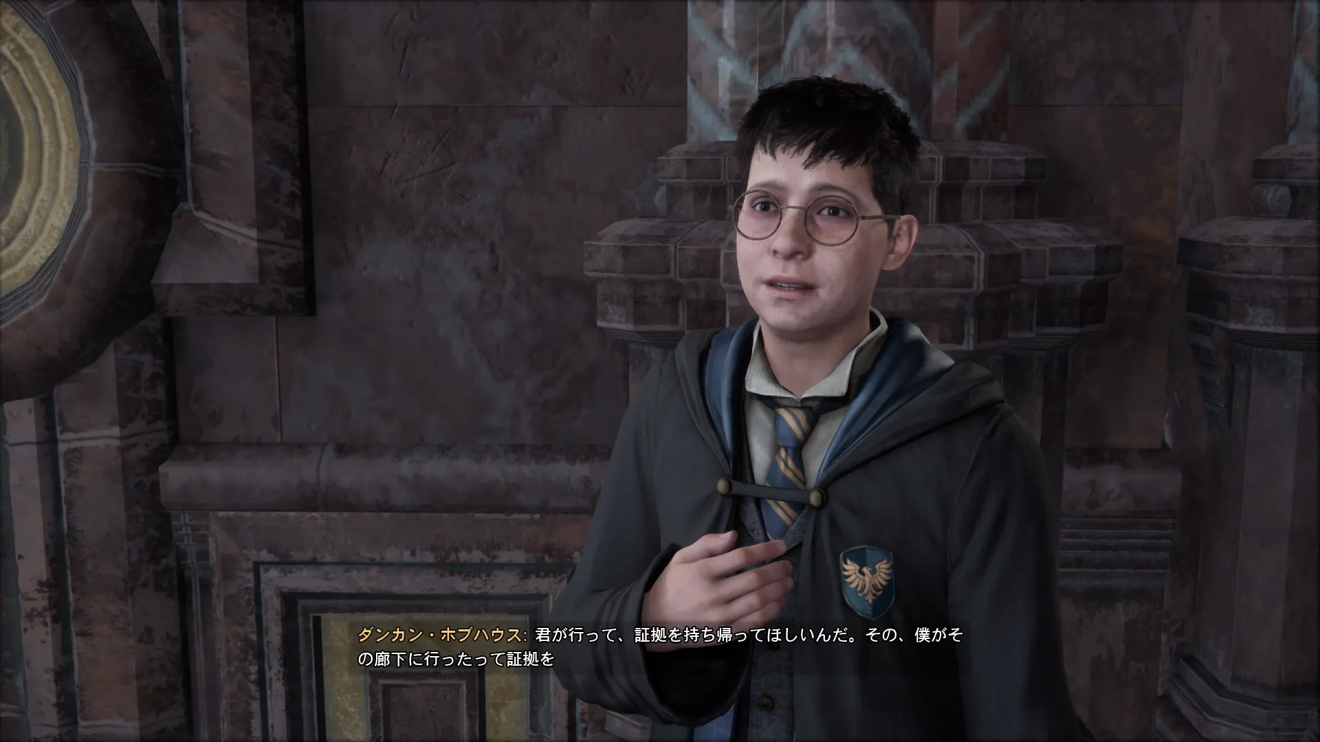クエストの発生場所は「闇の魔術に対する防衛術の塔」の一階。二階に行くための階段の近くにいる「ダンカン・ボブハウス」という男子学生に話しかけることで発生するクエスト。あらすじは上記の通りで会話が終わったら薬草学の隠し廊下を探すことになる。クエストの進行条件として炎の魔法「インセンディオ」を習得してないとクエストを発生させることができないので、ヘキャット先生の指導の下習得しよう