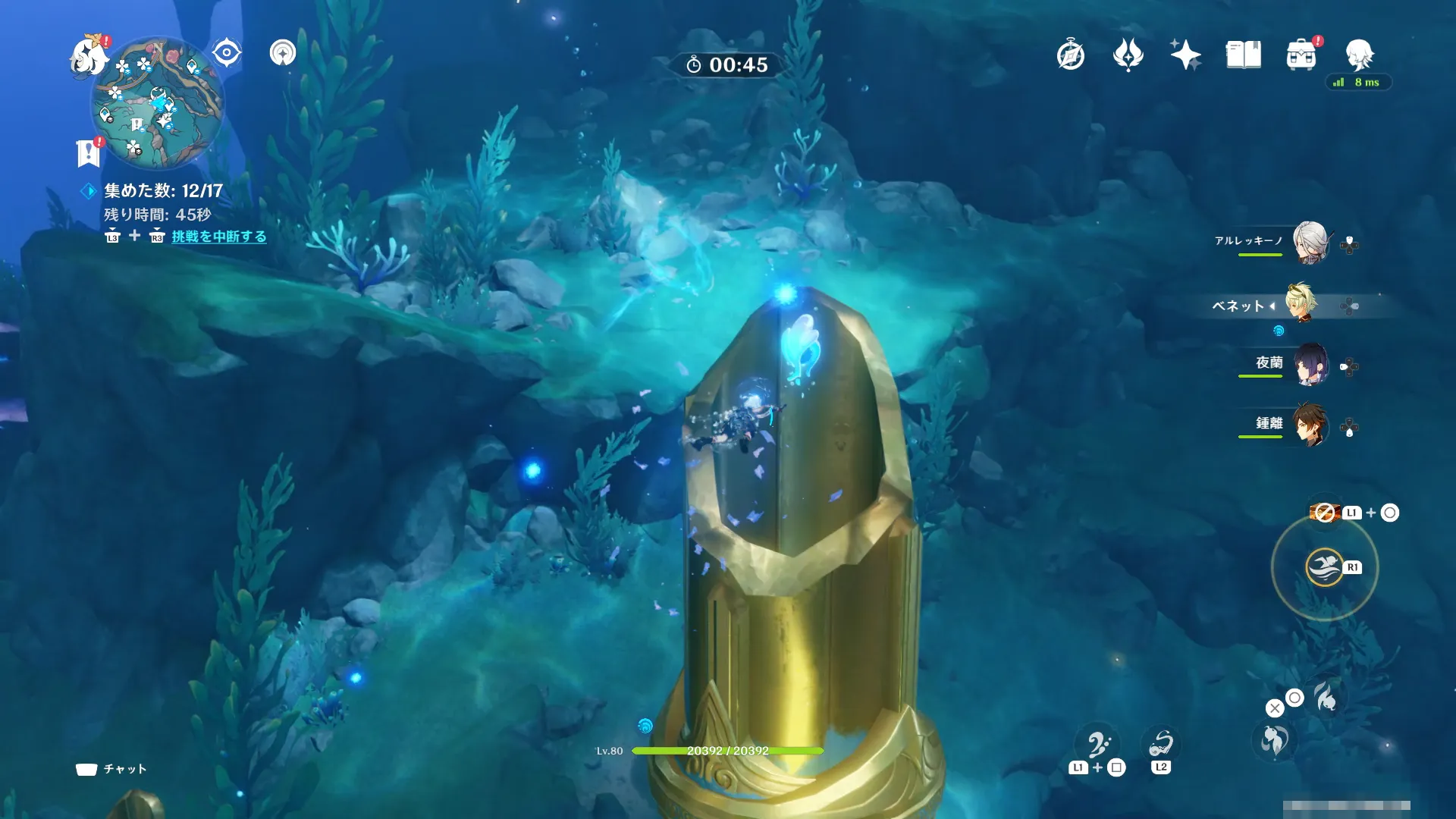 カピトリヌス山から最南端にあるワープポイントからさらに南の海底にある岩の中にある原海アベラント亜種(クラゲ)が近くにいるので力を借りて岩を破壊しよう