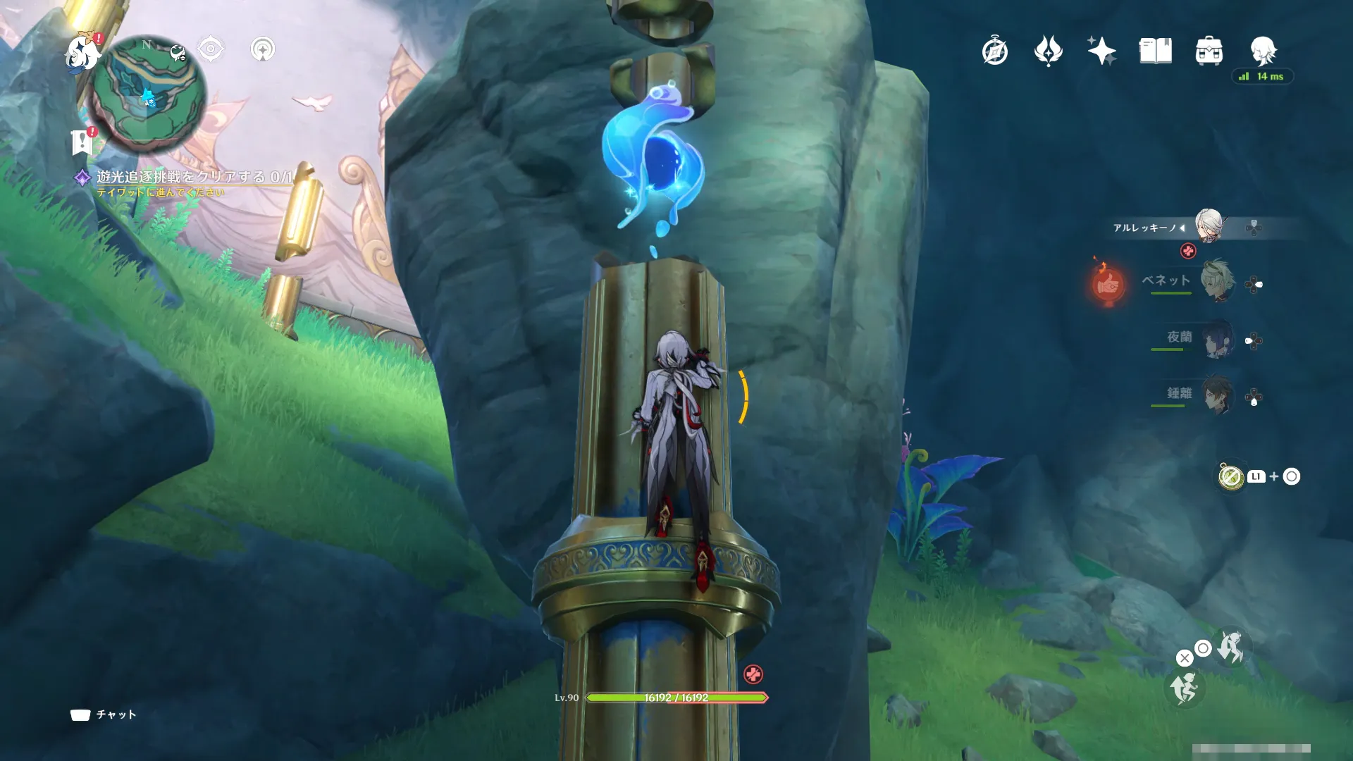 海綿の上に置いてある水神の瞳、かなり上の方にあり上段を探索する意識がないと水神の瞳の共鳴石を使わずに発見するのはなかなか困難な場所にある。子の水神の瞳の先には時間制限チャレンジが存在しておりチャレンジをこなすとアルタ・セミタの入り口付近まで高速移動しながら宝箱を入手することができる。