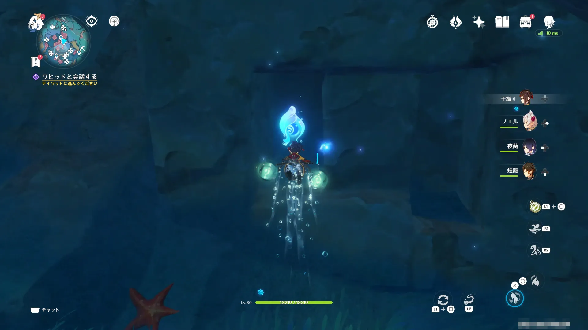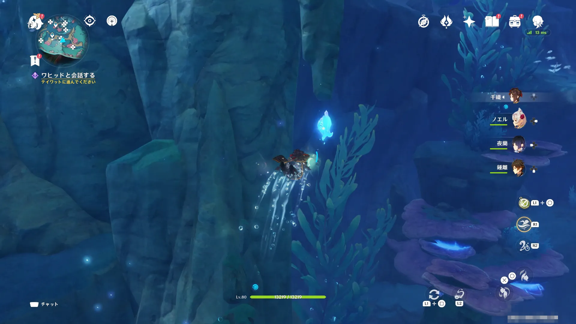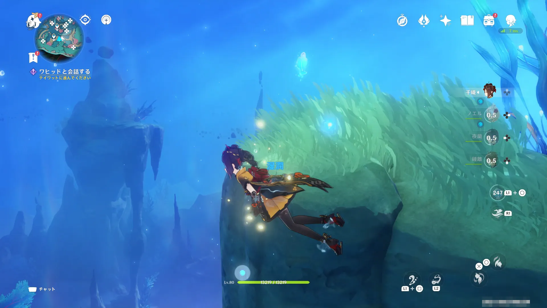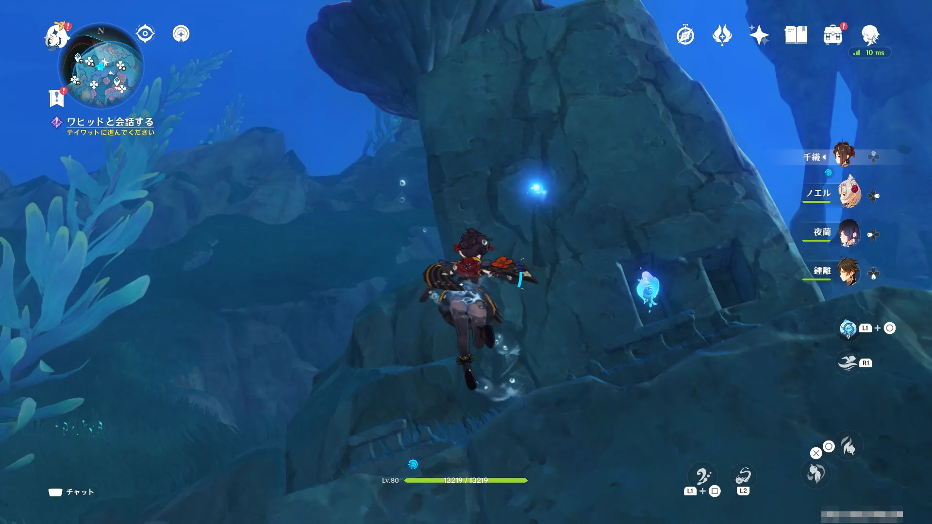 岩つららがある崖の上にある。天井の範囲外近くにあるので見落としやすい岩つららの水神の瞳から上に向かって泳ぐことで時間はかかるもののたどり着くことができる。