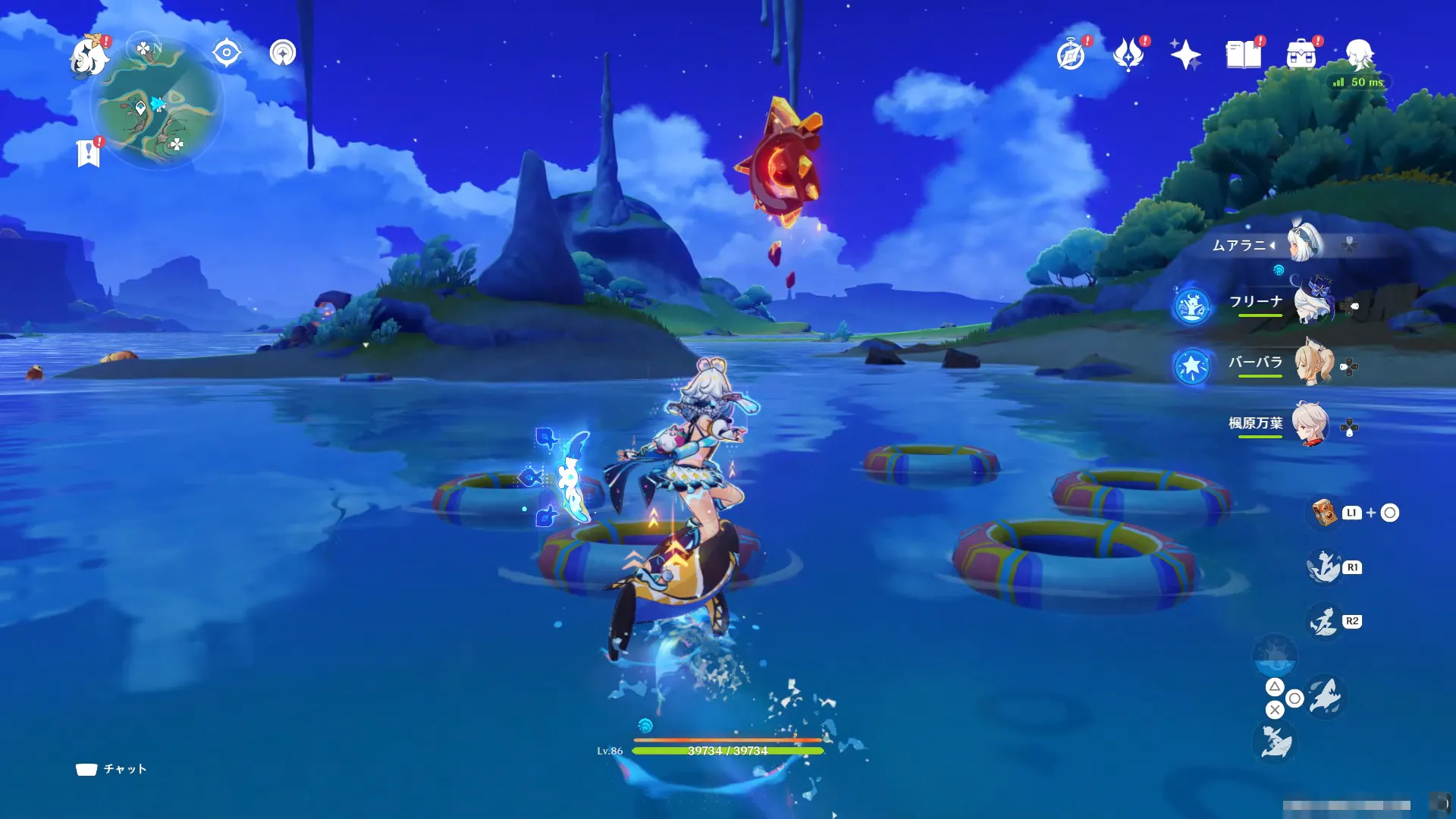現在解放されている範囲で最も南側にある小さな小島と岩山の間にある5つの浮き輪の上にある戦闘は行う必要はなく獲得自体も非常に簡単である。