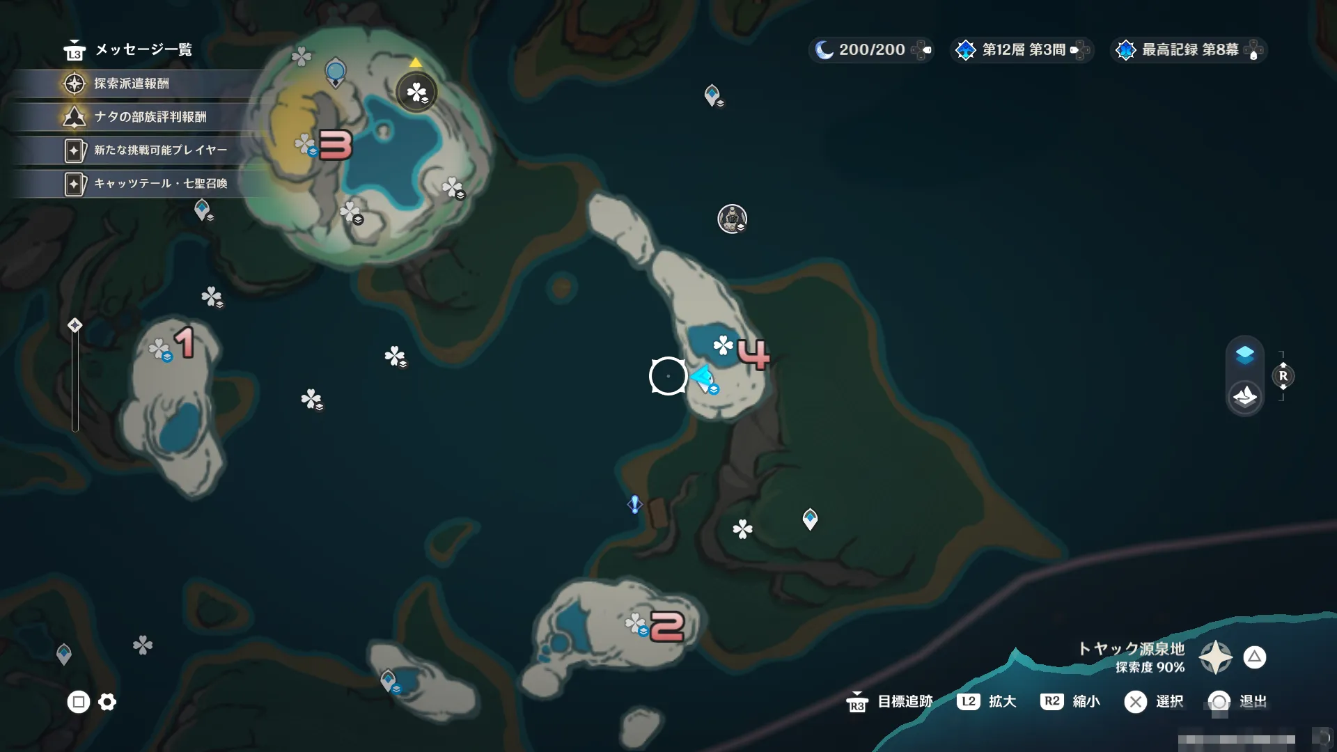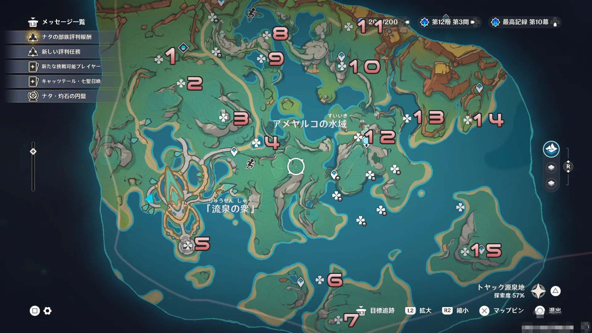 原神ver5.0で追加された集落の一つ「流泉の衆」地下には液体の燃素が活発に動いている温泉地。水辺にいる竜「コホラ竜」に竜憑依をすることで水辺を高速で泳ぐことができる。この「コホラ竜」と期間限定星5「ムアラニ」だけは灼熱な液体燃素の上を走ることができる。ちなみに液体燃素があるところで泳ぐとすごいスピードでHPが削られアチーブメントが達成することができる。 獲得できるエリアは地下と地上、空中にわかれており取得できる瞳の数は21個と多い 紹介するうえ上では地下と地上,世界任務前提の3つの項目に分けて紹介します。