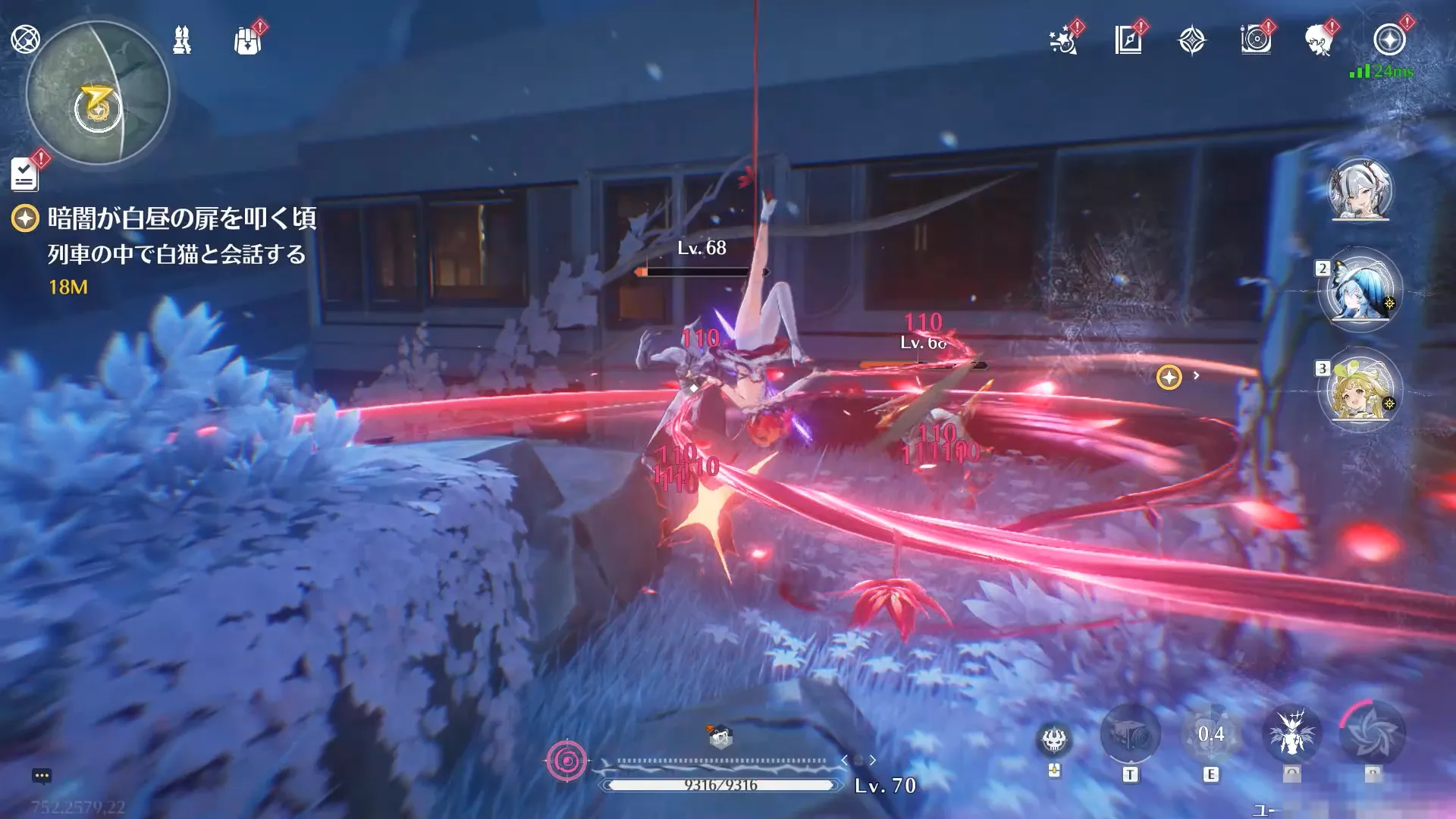 敵を倒し終わると次に異空間に移動し巨大な猫に話しかけることになる。その後は回折主人公1人を操作して敵をなぎ倒していく。敵のレベルに合わせて漂白者も強くなるので攻略することは相難しくないだろう。視点が切り替わり操作キャラが変更されるなどなんやかんやで突破したら画面が切り替わり一度メインストーリーの任務が完了し報酬を受け取ることになる。
